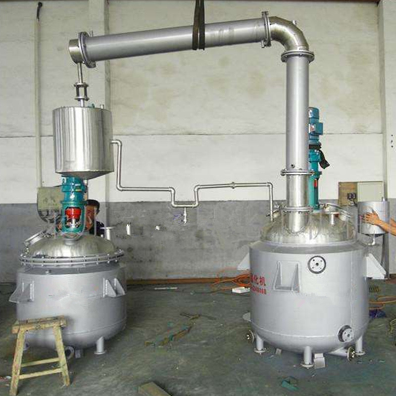 樹脂成套設備由反應鍋、豎式分餾柱、臥式冷凝器、貯水器、溢油槽、管線(對稀釜)等組成,全套設備與物料接觸部分的采用不銹鋼制作。反應釜內(nèi)可設置不銹鋼盤管或夾套內(nèi)設置不銹鋼盤管。