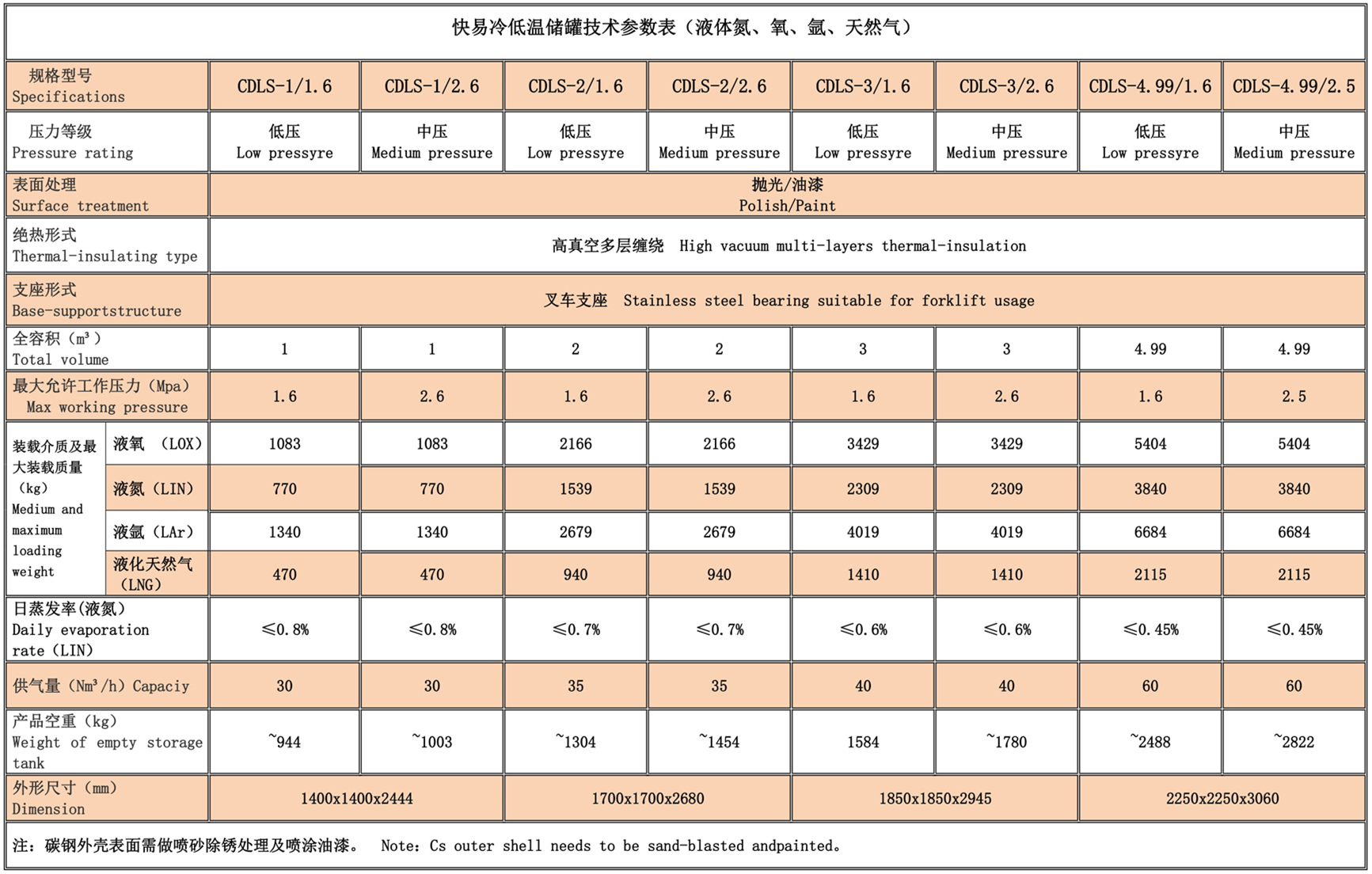 氮氧氬快易冷小型低溫貯罐技術特點: