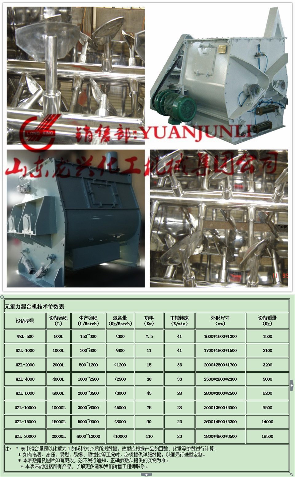 無重力混合機(jī)又稱無重力混合機(jī)、雙軸無重力混合機(jī)、無重力式雙軸槳葉攪拌機(jī)。大體可分為普通無重力混合機(jī)和飛刀式無重力混合機(jī)兩類,后者主要用于物料中含有纖維而采用飛刀切斷后再混合。一般情況下會用碳鋼或者不銹鋼等材質(zhì),有腐蝕性的化工物料或者銅粉等物料的攪拌會選用不銹鋼材質(zhì),而碳鋼的多用于攪拌水泥砂漿之類的物料。不過具體材質(zhì)的選用要根據(jù)使用者的工藝要求而論。
